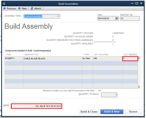 This article will show you how the Custom Assembly and Memo are being exported successfully from AdvancePro to QuickBooks with "Memo" in the following format "WO: REF#_PO#_".