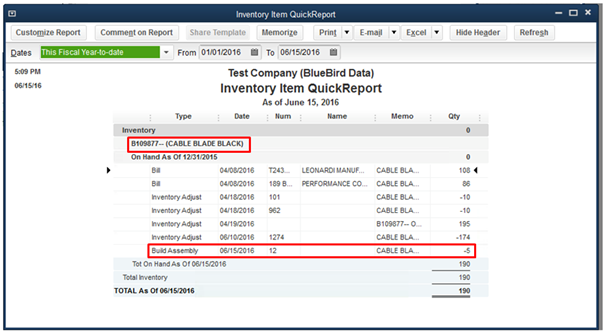 The Custom Assembly and the Memo was successfully exported from AdvancePro to QuickBooks.