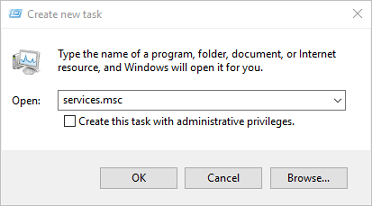 5. You now need to restart the service. One method of doing this is to right-click on the bottom navigation pane of the Windows operating system and open Task Manager (you may also press CTRL + ALT + DELETE) > Click File > Click Run New Task > Enter services.msc > Click OK