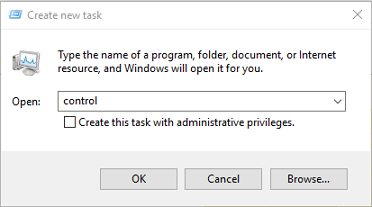 7. Now we need to add an exception to the Windows Firewall. One way to do this is to go back to the Task Manager (See Step 5) > Click File > Click Run New Task > Enter control > Click OK