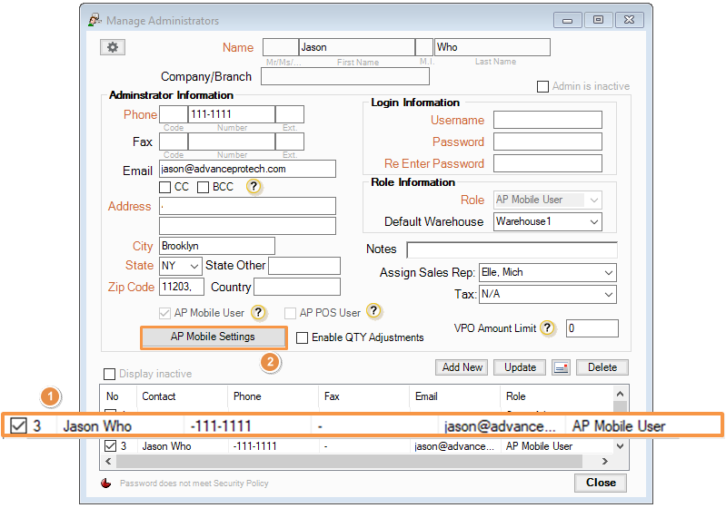 - Look for an AP Mobile user and click on AP Mobile Settings.