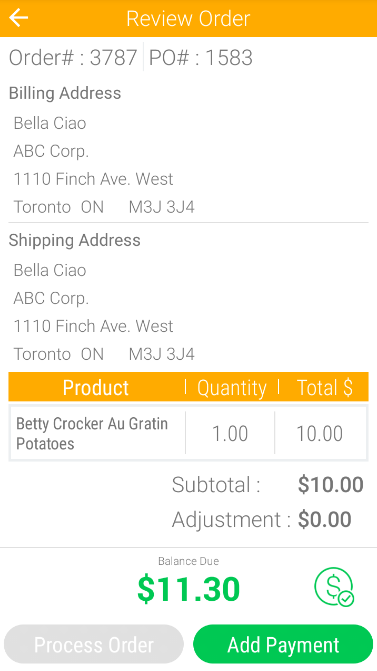 AdvancePro has added functionality that restricts the APMobile user to proceed or complete the order without paying the full order amount.
