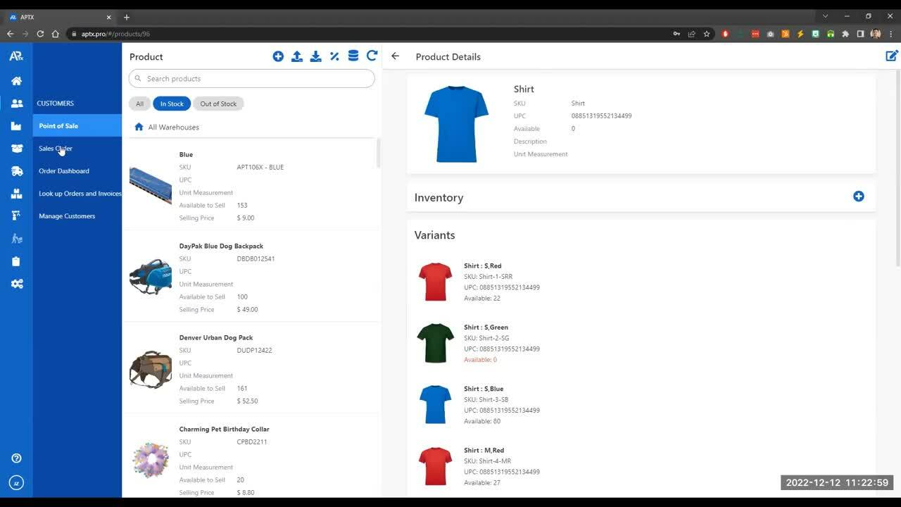 2. Search for the item with variant (ex. Shirt).
