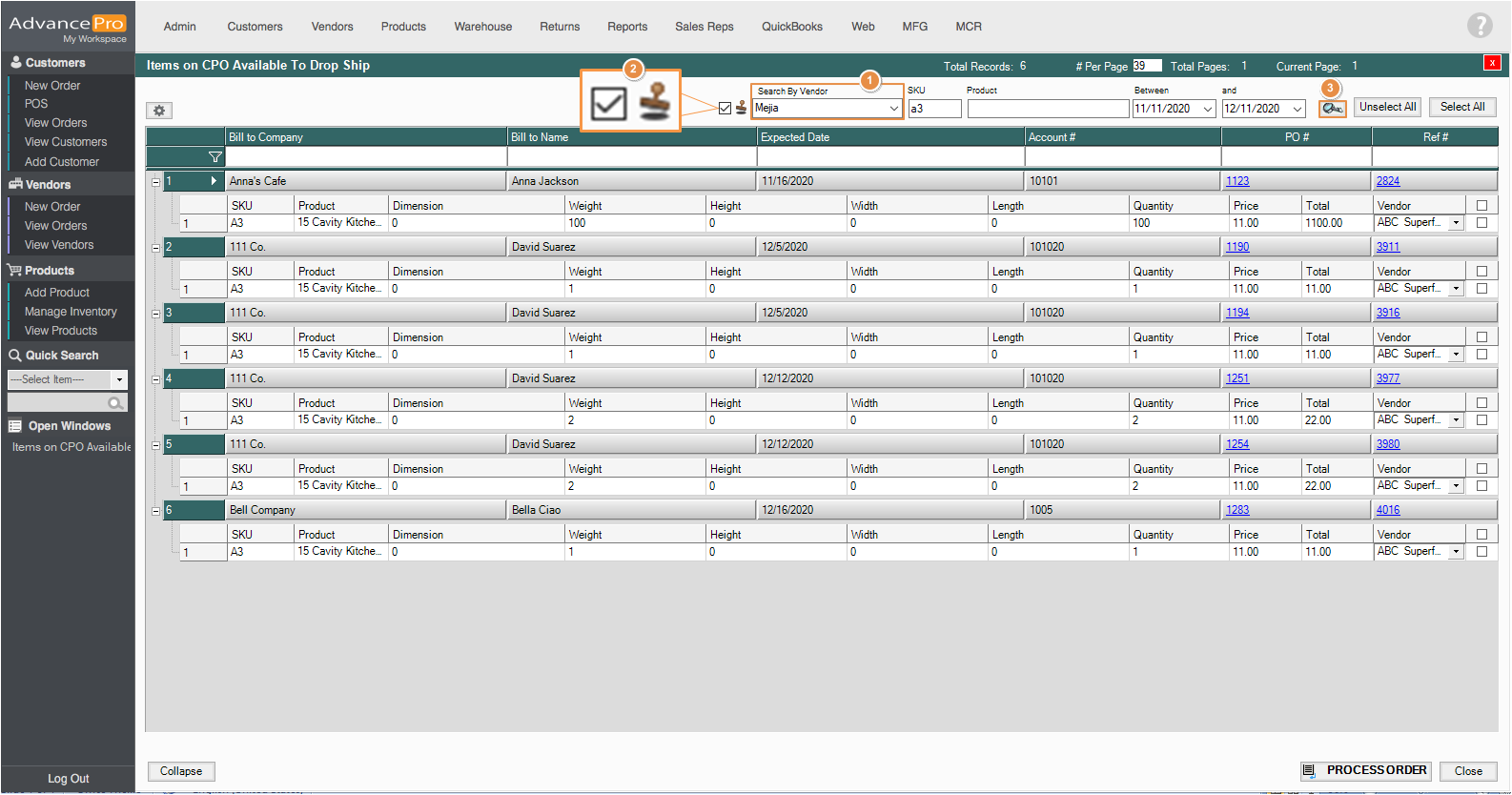 - You can also filter the orders by using vendors, SKU, and Product Name.