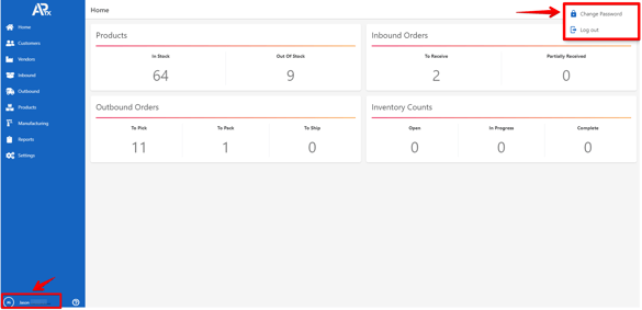 2. You can access the Change Password Option by Clicking your name on either the Upper Right portion of the screen or on the Menu Bar on the left.