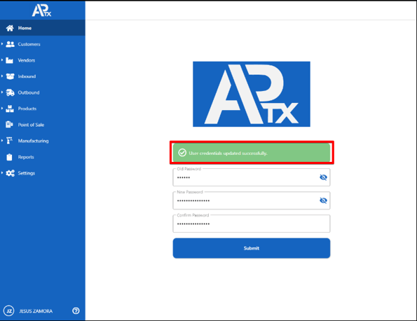 4. A notification will appear that confirms that you have successfully updated your Password.
