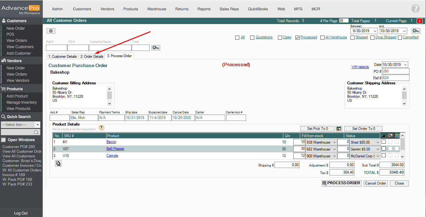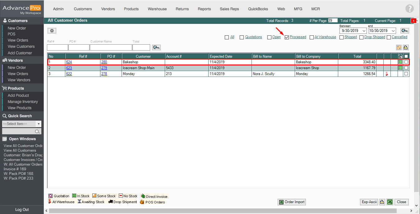 1. Go to Warehouse on the Switchboard > Orders to Pick/Pack/Ship.