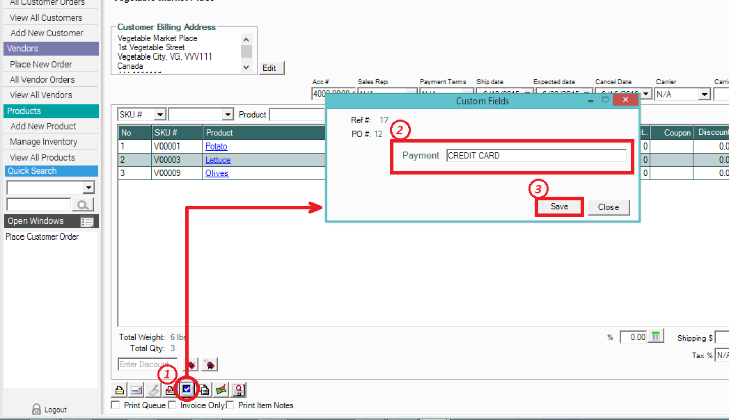 2. Type in the Column Header for Custom Field 1 under Custom Fields for Customer Order.