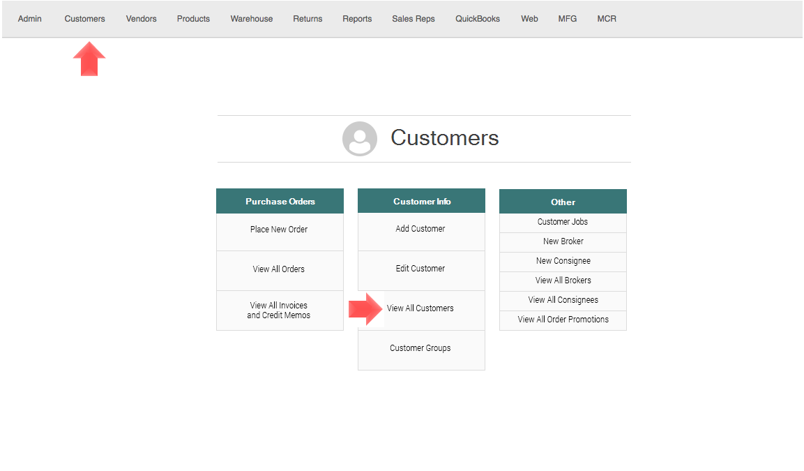 2. To view or edit a customer click the E button and you may edit your company info, add or update bill to and shipping address.