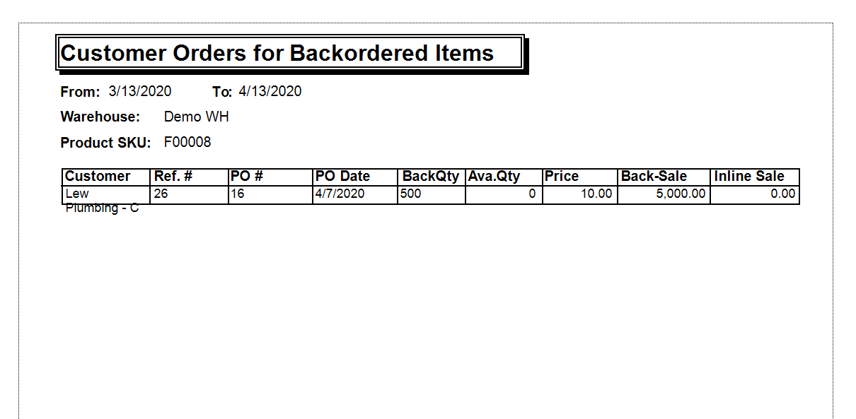 The Customer Back Ordered Items Report form will open. Enter the date range for the report.