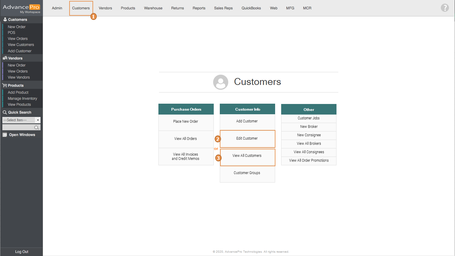 - Go to the Customers switchboard and click on either View All Customers or Edit Customer