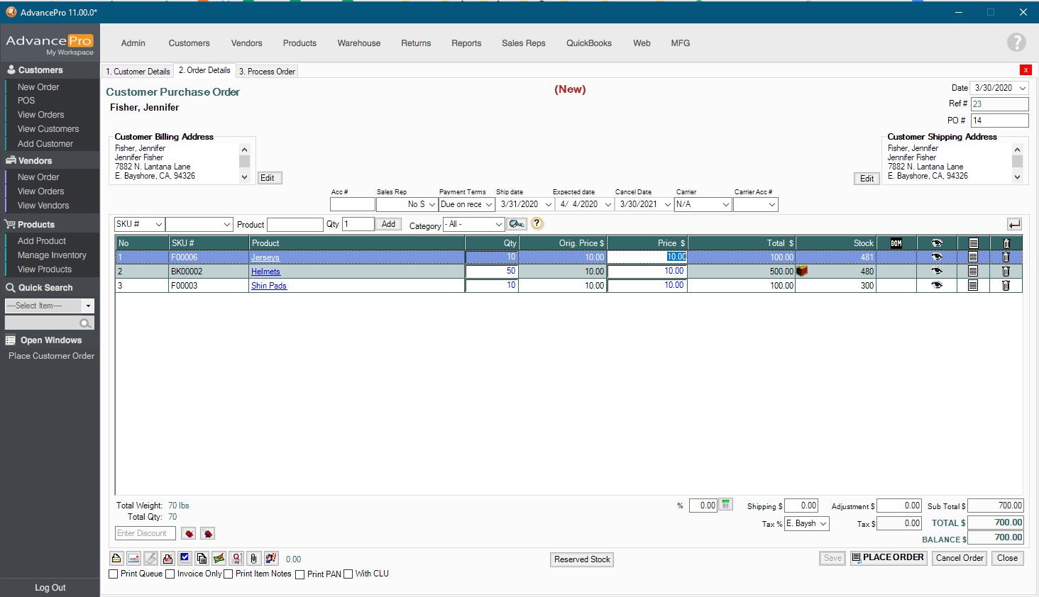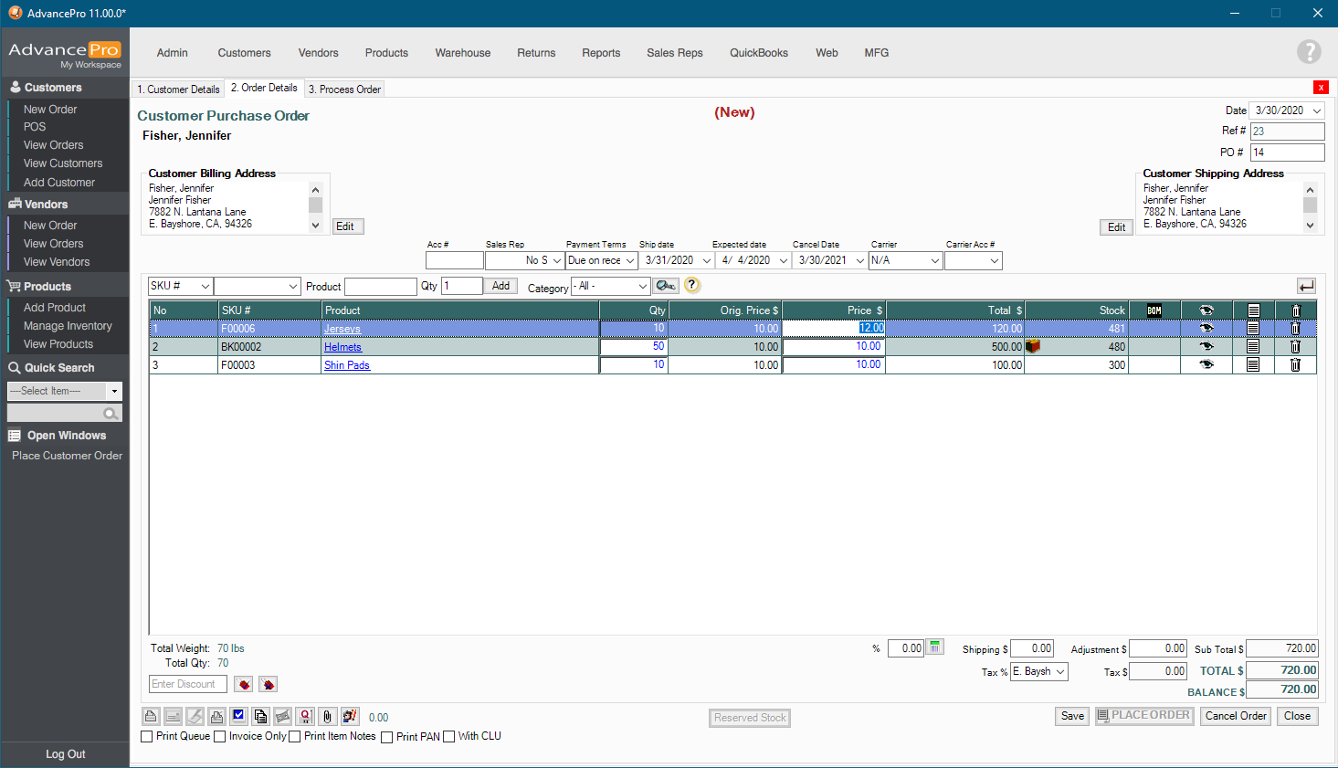 2. The Selling Price can be edited on the Customer Purchase Order