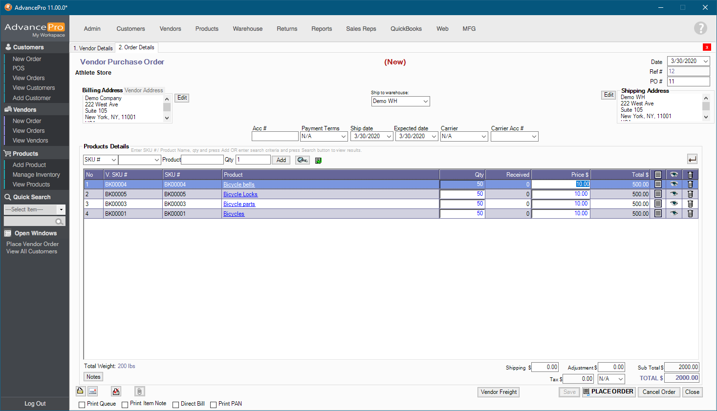 1. Create a Vendor Purchase Order