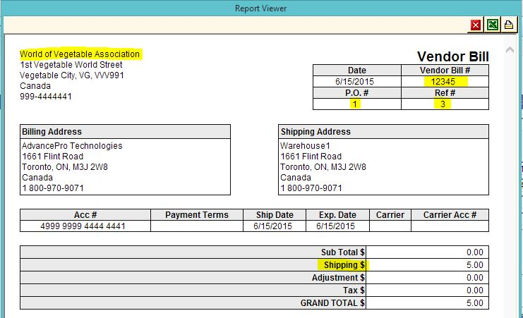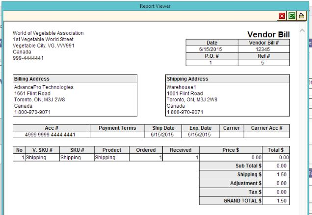 6. PLACE the order and create the bill. Enter the same Vendor Bill/Ref # as the previous order that was billed.