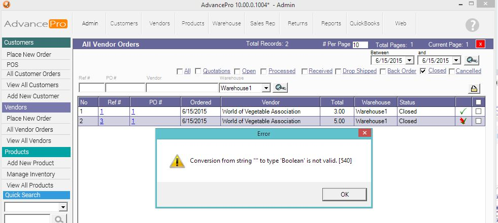 But for a heads up, the problem with having an order with no line item is getting this string error message when opening the VPO (not the bill). You may click Ok on this prompt message. It doesn't affect the order, it's basically just a notification that there is no line item on the order.