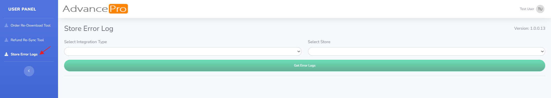 - Log in to https://remote.advanceprotech.com/AdminPanel and click Store Error Logs