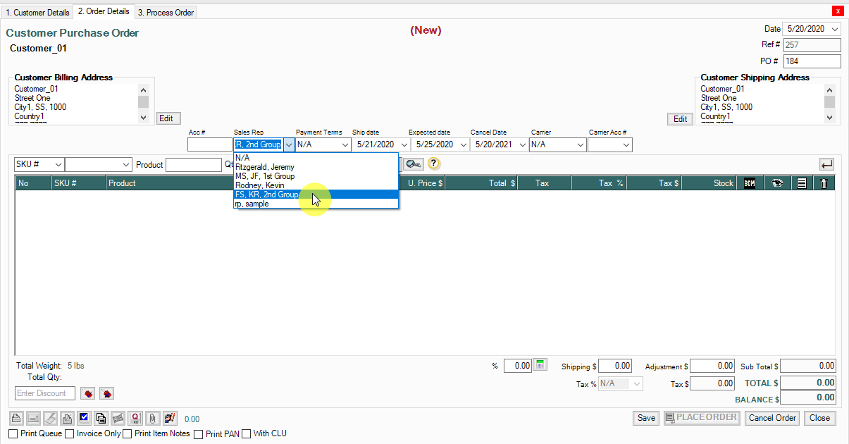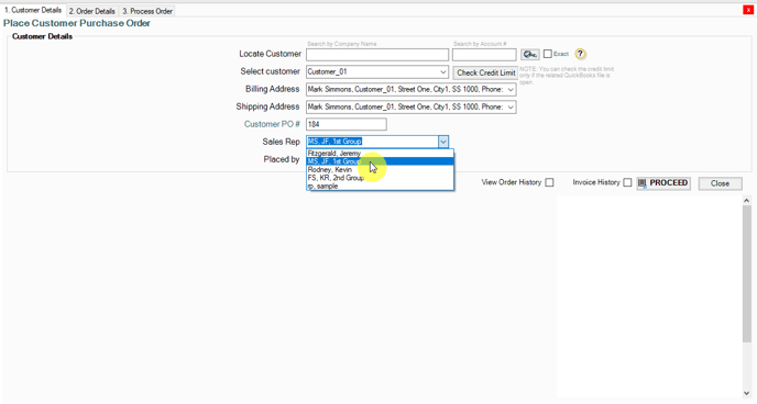 To assign the Group Sales Rep to a CPO, simply select a Group Sales Rep from the Sales Rep drop-down.
