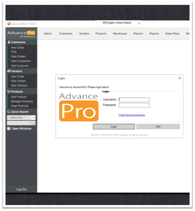 You will see now the login page for AdvancePro. Log in using your username and password.