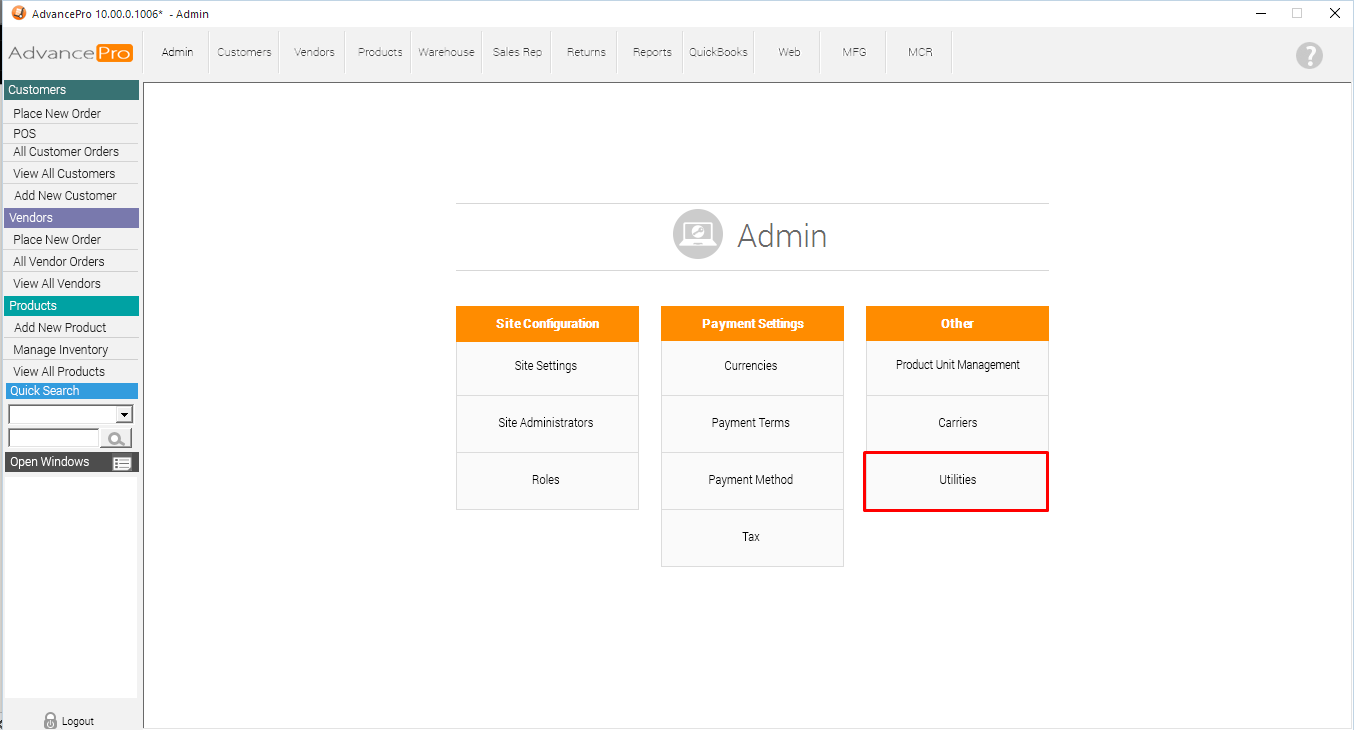To Activate Barcode Scanner module, go to Admin >> Utilities