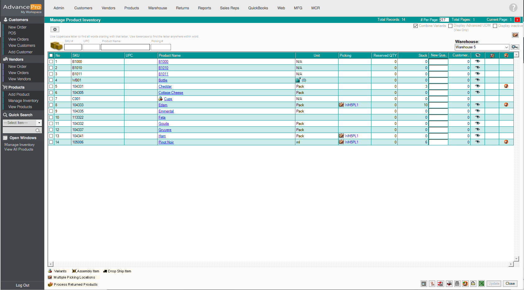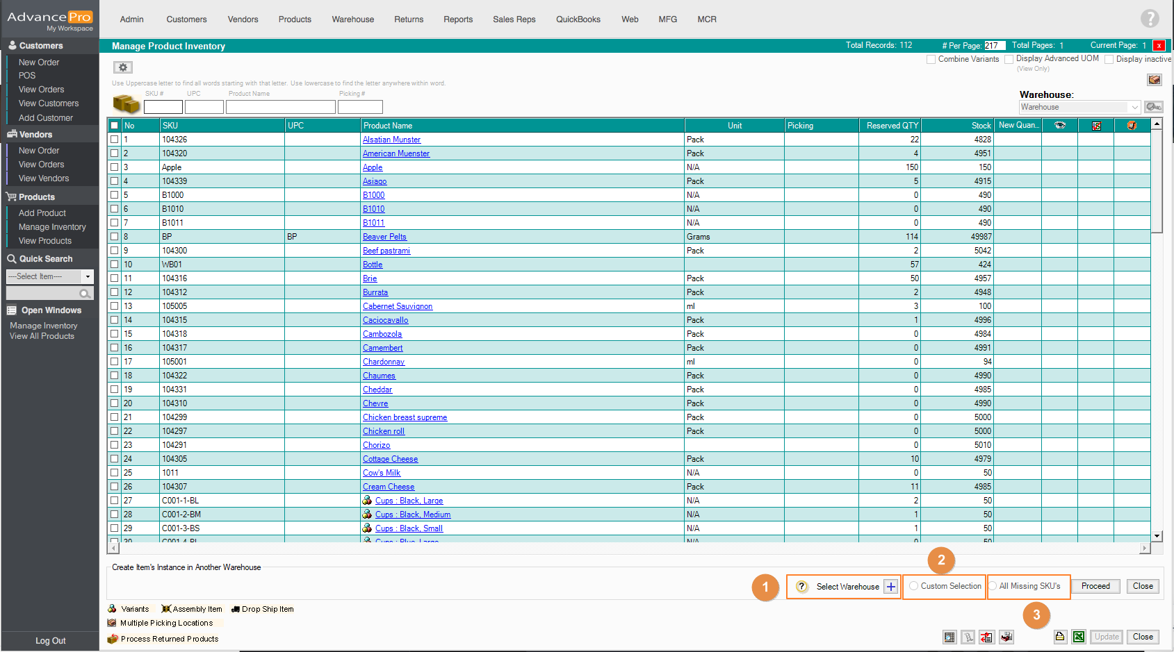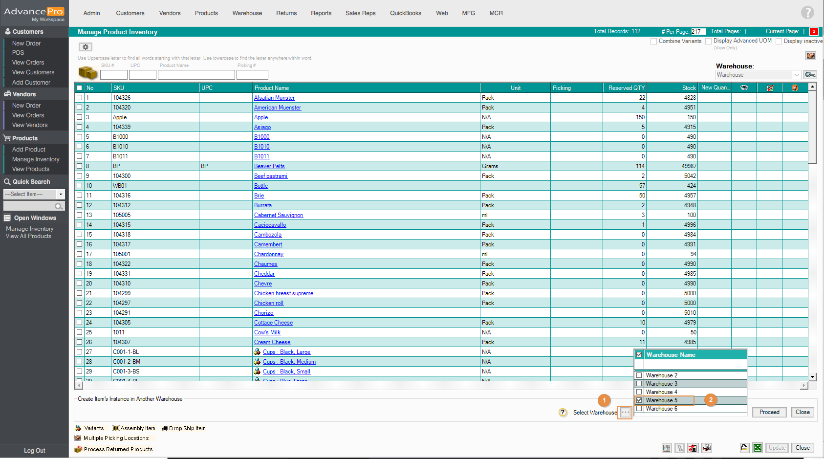 AdvancePro has added the ability to assign selected SKUs to different warehouses without the need to process a transfer