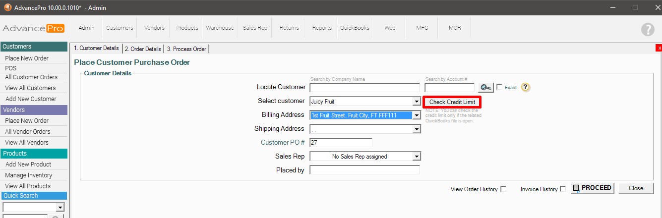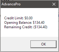 A pop up screen will display the credit limit of your customer based on your QuickBooks file, so make sure it is open.
