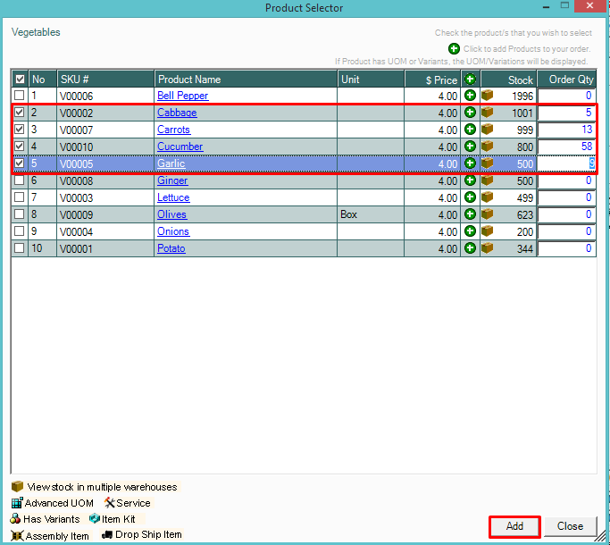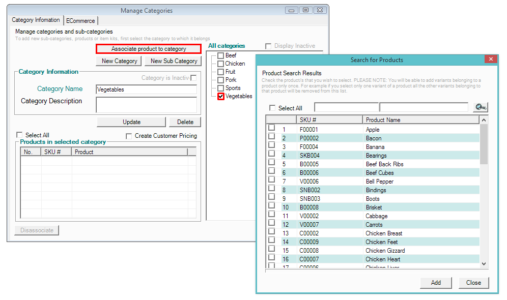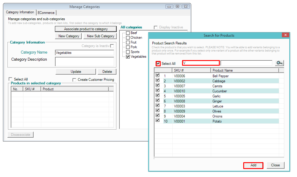 Enter the SKU number(s) that you want to group in this category and click Add. You can select multiple categories at once.
