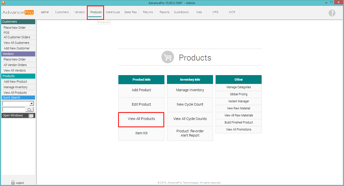 1. Go to Products > View All Products