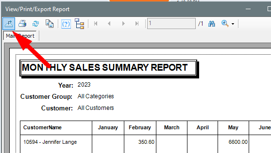 1. After generating the report, click the Export button on the top left corner