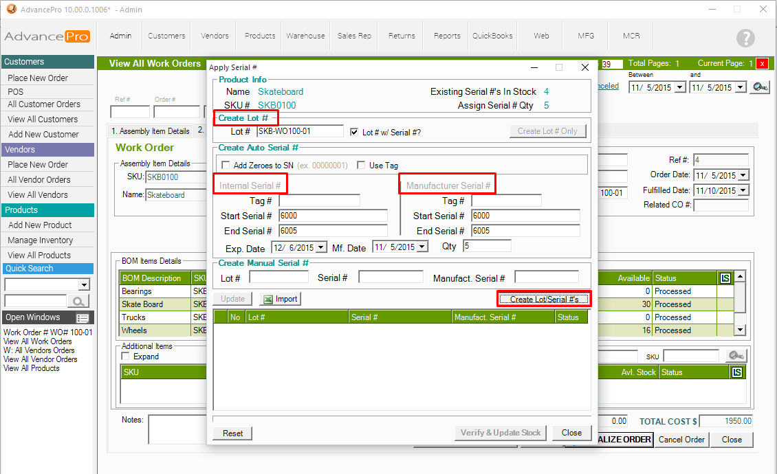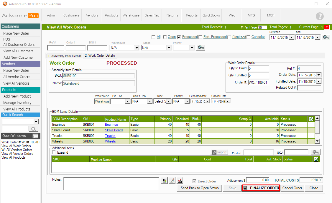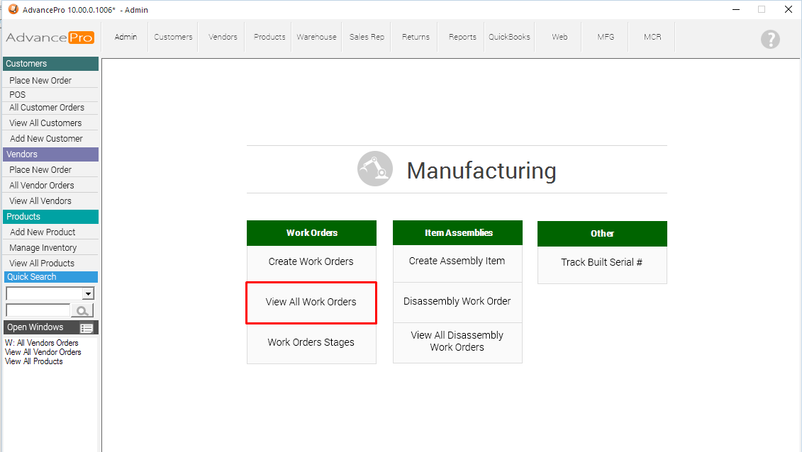 8. Go back to MFG Module >> View all Work Orders