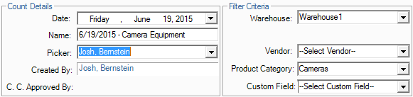 - Click on "Products > New Cycle Count"
