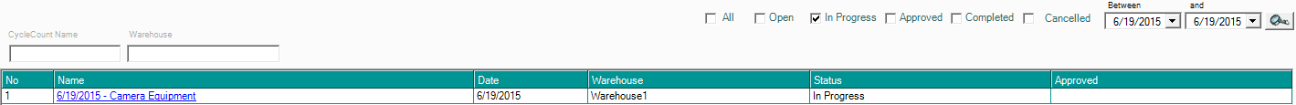 - Once the cycle count sheet has been filled out, click "Products > View All Cycle Counts" and select "In Progress", then select your cycle count