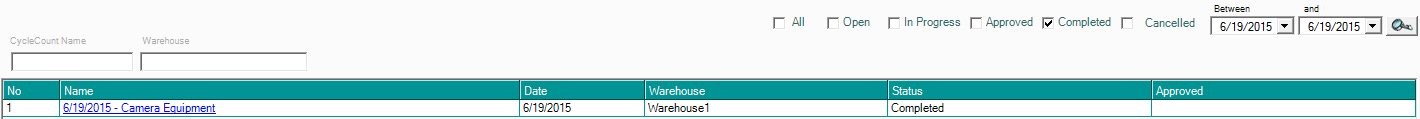 - To review and approve the cycle count, click "Products > View All Cycle Counts" and select "Completed" from the top of the screen, then select the cycle count to be reviewed.