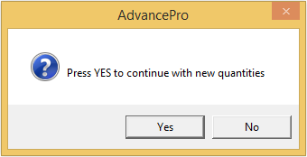 - You will be prompted to confirm the stock update, click "Yes" to continue