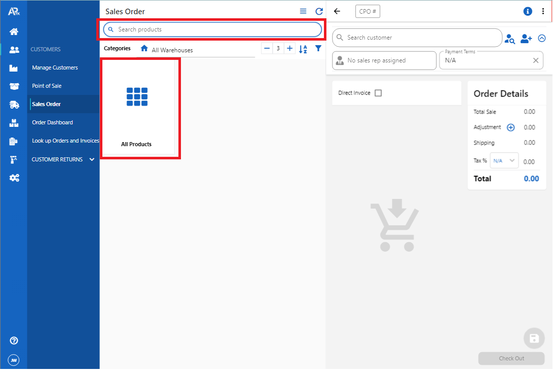 3. Select >> All Products or Search Products in the Search Box by searching the product's name or entering the product's SKU Number.