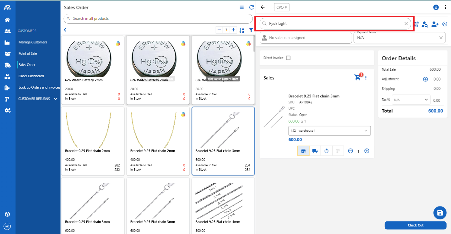 4. Select >> SEARCH bar to search for a customer or Enter the Customer name in the search bar.