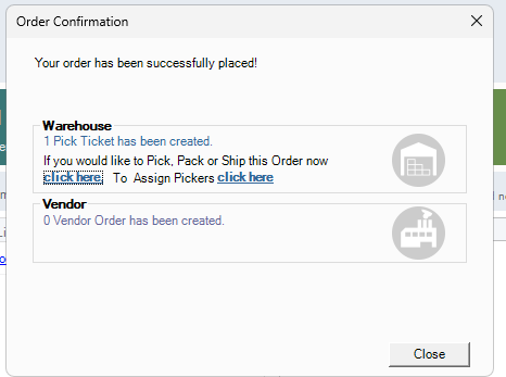 2. An Order Confirmation prompt would appear if the Order was successful