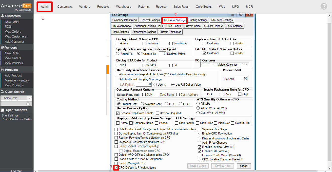 1. Enable "CPO Default to PriceList Items" on Site Settings"