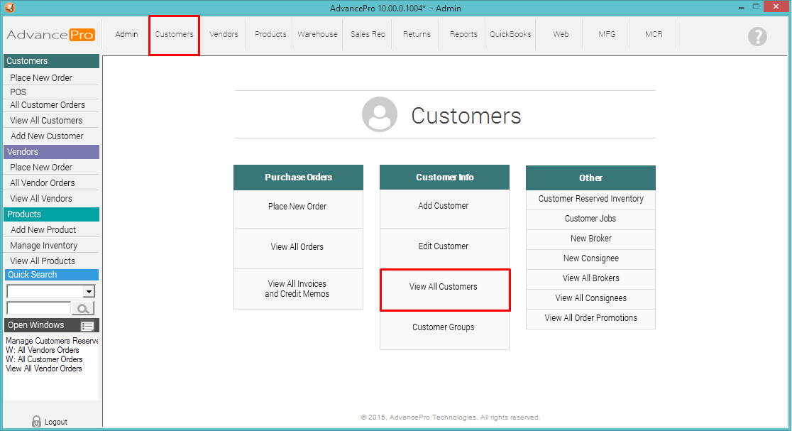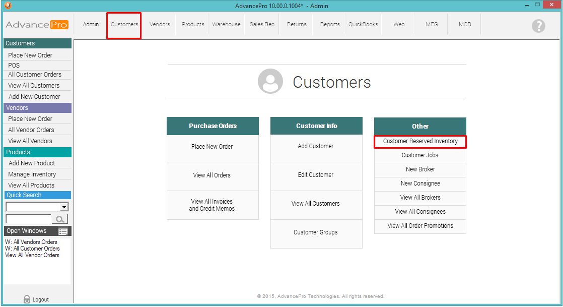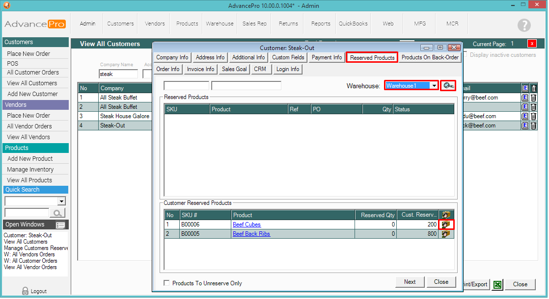 1. To unreserve products based on customer level, go to Customers >> View All Customers