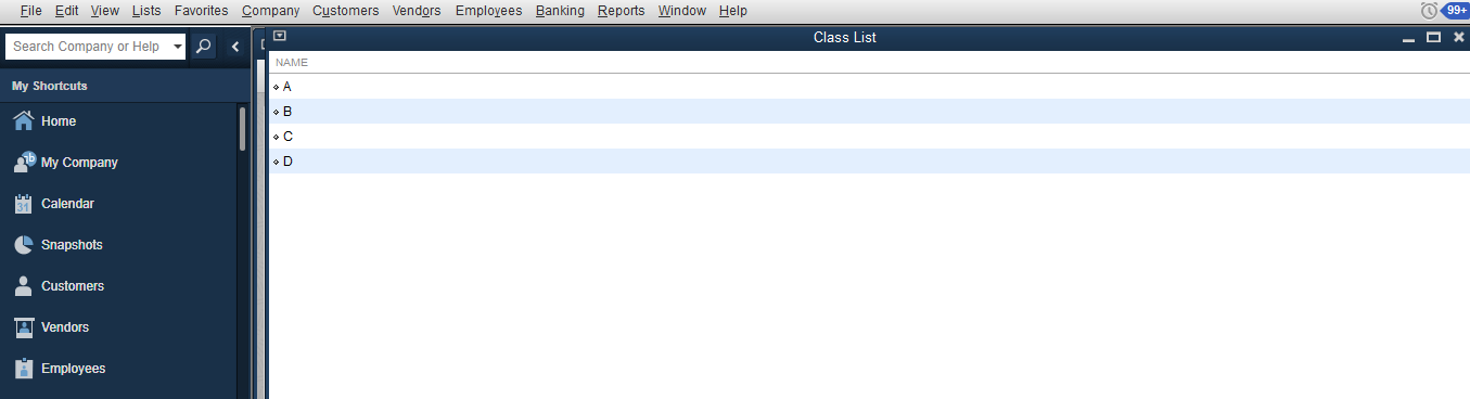 Sample classes created in Quickbooks.