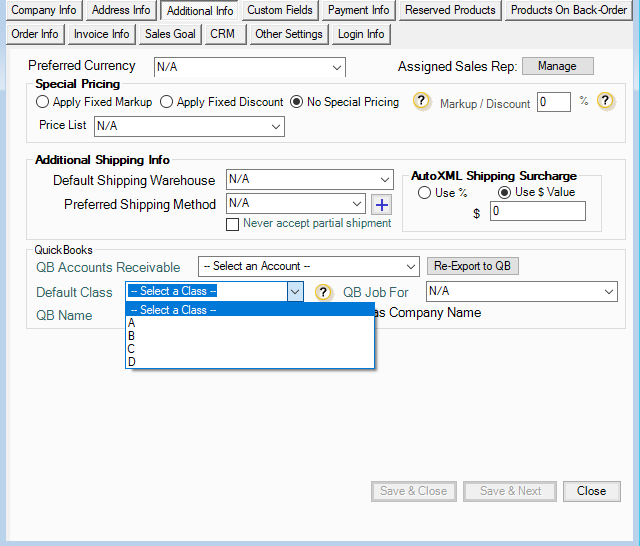 5. Once done, the classes set up in Quickbooks should now reflect in AdvancePro.