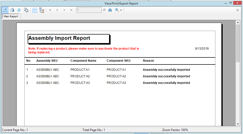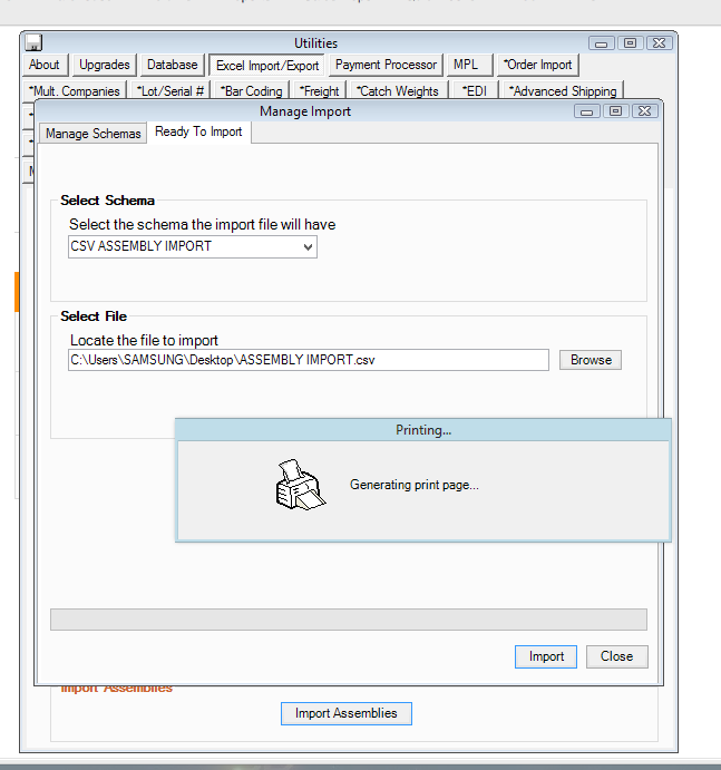 You will see a report of the imported assembly items and their corresponding error messages (usually if the components do not yet exist on AdvancePro) or you may see "Assembly successfully imported" if it goes through with no issues.