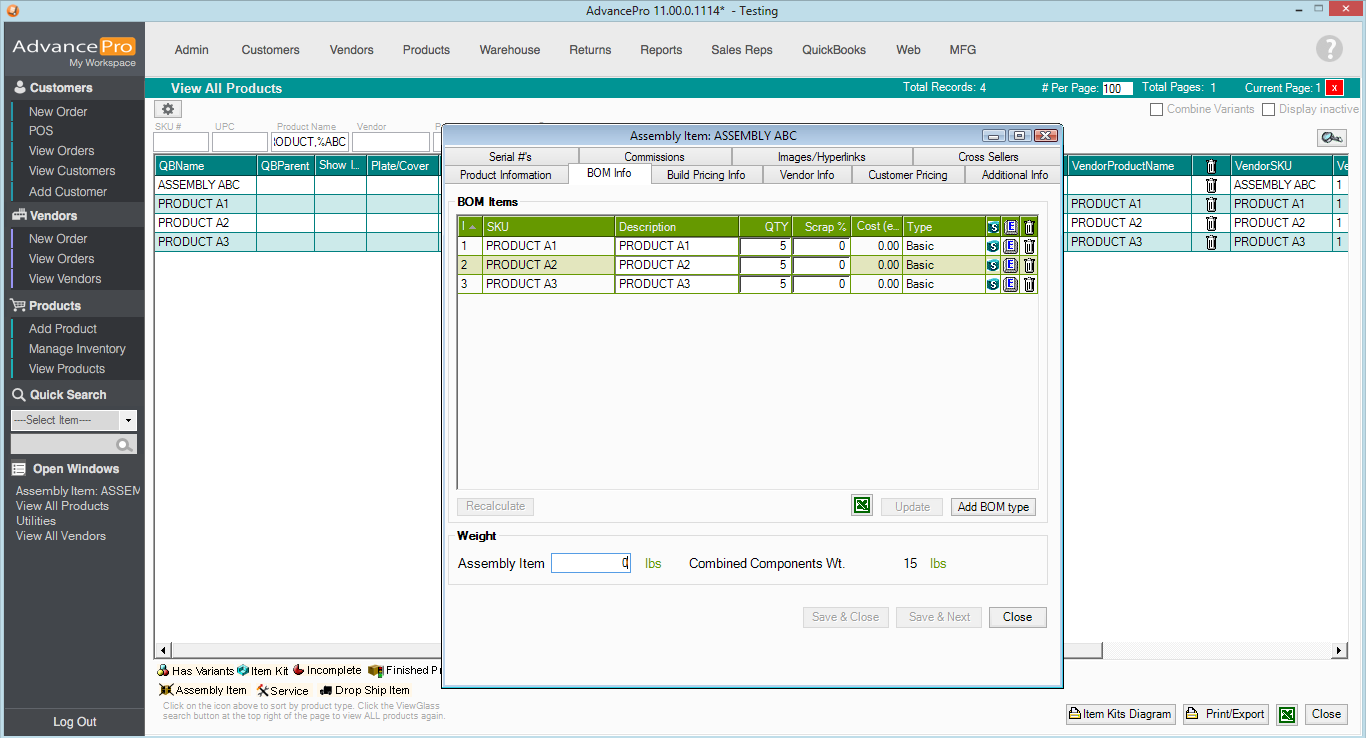 6. Finally, confirm on the BOM Info Tab of that Assembly Item if the products had been associated successfully