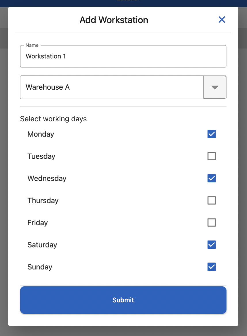 - Submit - When you press the submit button, you'll see a success message and the new workstation will appear in the workstations list, ready for configuration.