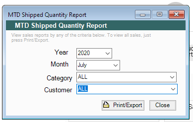 Go to Reports > Sales Reports > MTD Shipped Qty Report