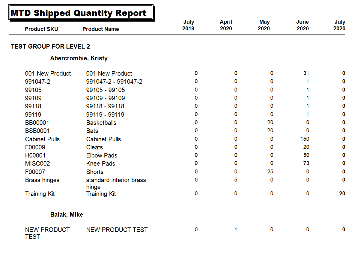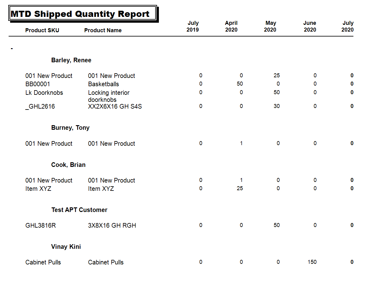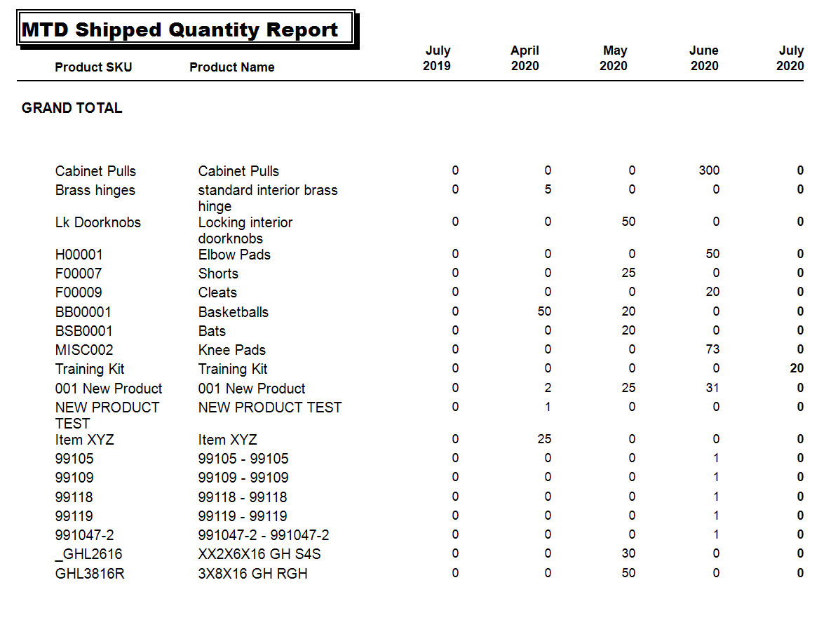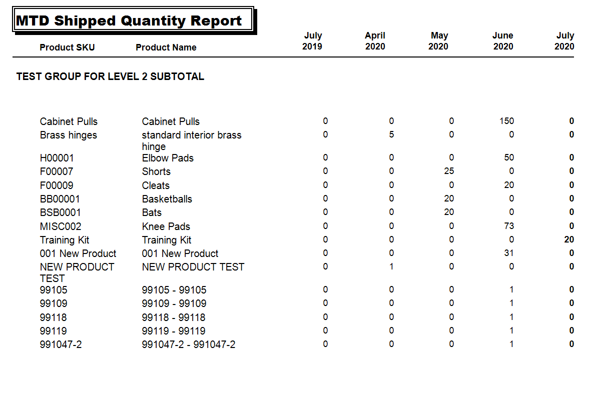 Month to Date Shipped Quantity Report