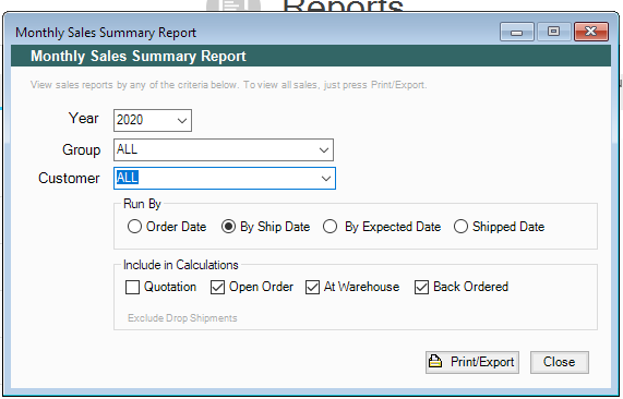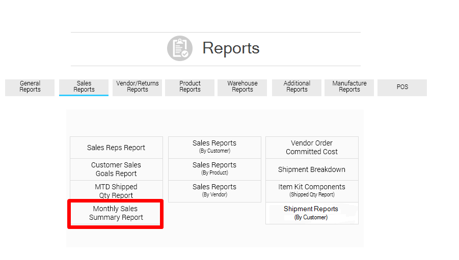 Go to Reports > Sales Reports > Monthly Sales Summary Report