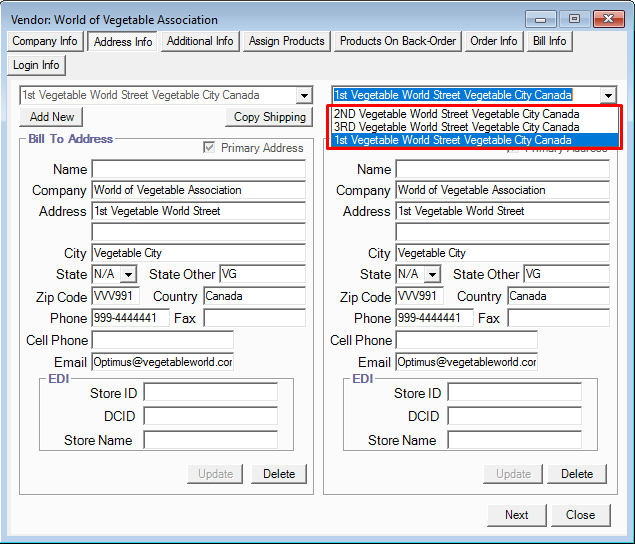 MULTIPLE ADDRESS EXPORT FOR VENDORS