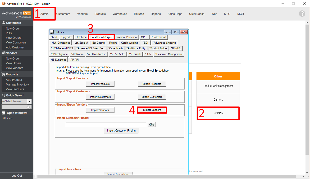 First go to Admin Switchboard >> Excel Import/Export tab >> Click Export Vendors