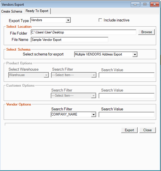 To use this feature you need to create a schema for exporting vendors and all of the addresses for each.