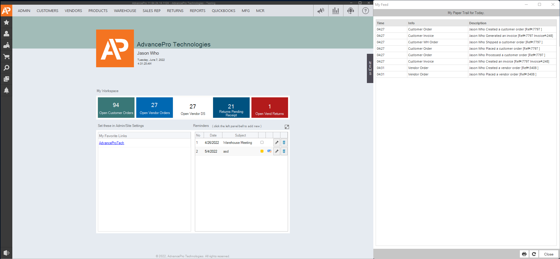 AdvancePro has introduced a new dashboard screen where you can find all of the brand new reports and charts.